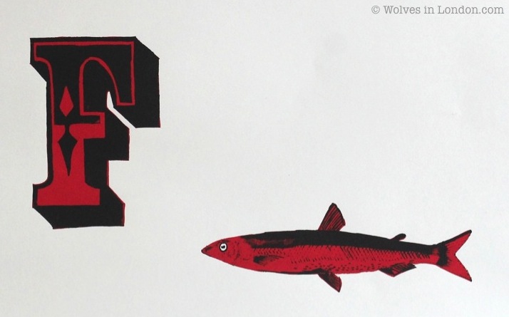 I traced out a fish image I got from Old Book Illustrations and the F is from a free downloadable font called Coffee Tin. (I’d printed them out beforehand onto normal A4, but actually if I’d had some tracing paper that I could load into a printer, that would have been the easiest way of doing it…)
