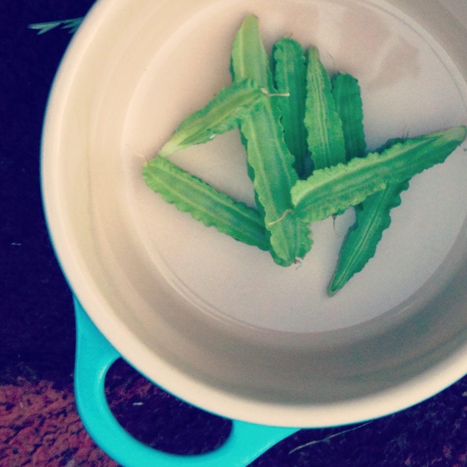 As the seed packet had instructed, I lightly boiled them, adding nothing else in order not to risk spoiling their delicate flavour (again, the pedant in me would point out that Southeast Asian cuisine is not world renowned for lightly boiling things and not adding flavour, but hey ho…)